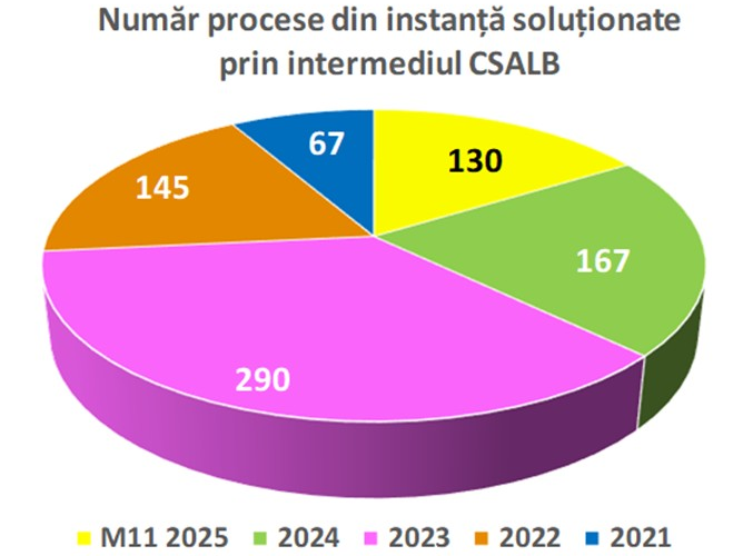 „Cererile care vizează soluționarea alternativă a unui litigiu aflat în diferite etape ale procesului pe fond au șanse să se rezolve în doar câteva zile în cadrul CSALB. Din punct de vedere operațional, aceste cereri care vin din instanță intră într-un flux mai rapid de soluționare, deoarece ambele părți cunosc deja problema care a dus la dispută.
