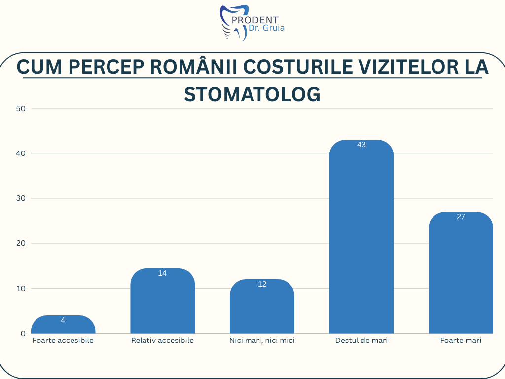 În percepția generală, 42,52% consideră vizitele „destul de scumpe” și 27,24% „foarte scumpe”, doar 18,05% apreciindu-le ca accesibile sau neutre.